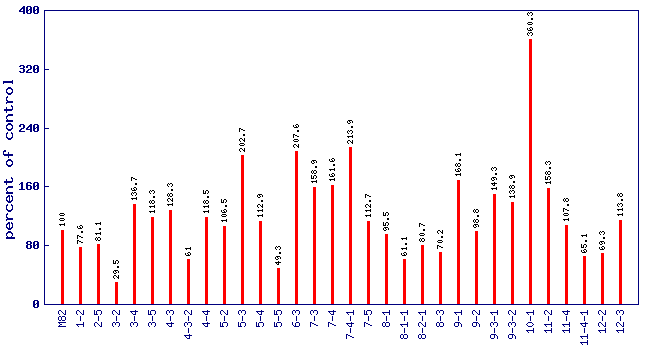 Relative 2-methyl-1-butanol level (percent of control)*