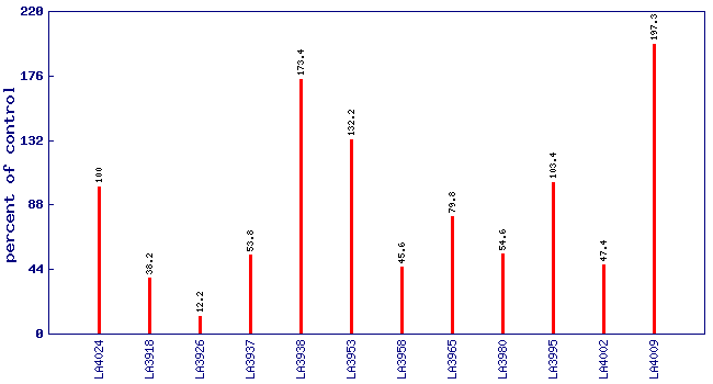 Relative 6-methyl-5-hepten-2-one level (percent of control)*