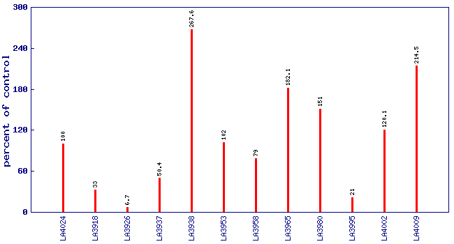 Relative isovaleronitrile level (percent of control)*