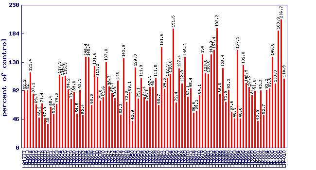 Relative trans-2-heptenal level (percent of control)*